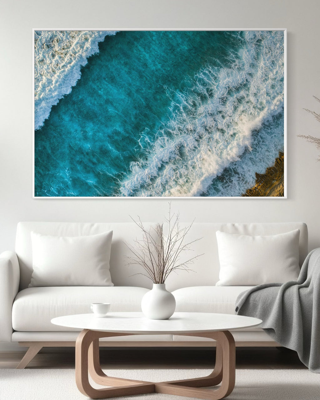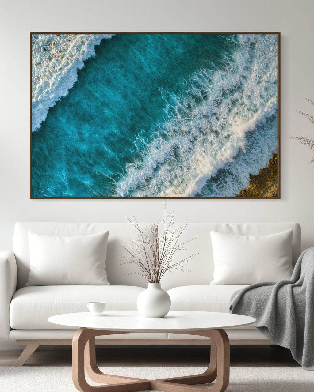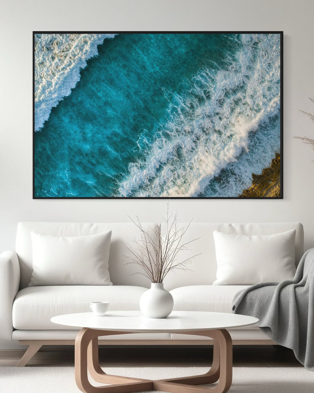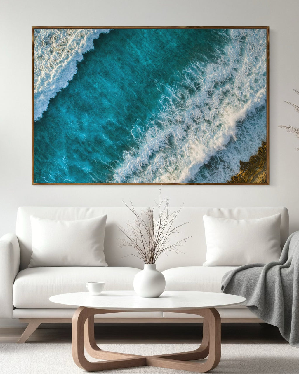 Esse quadro é ideal para quem deseja trazer para o ambiente a sensação revigorante do mar, adicionando um toque de leveza e sofisticação à decoração. Perfeito para salas de estar, quartos ou escritórios, criando um espaço de equilíbrio e inspiração.